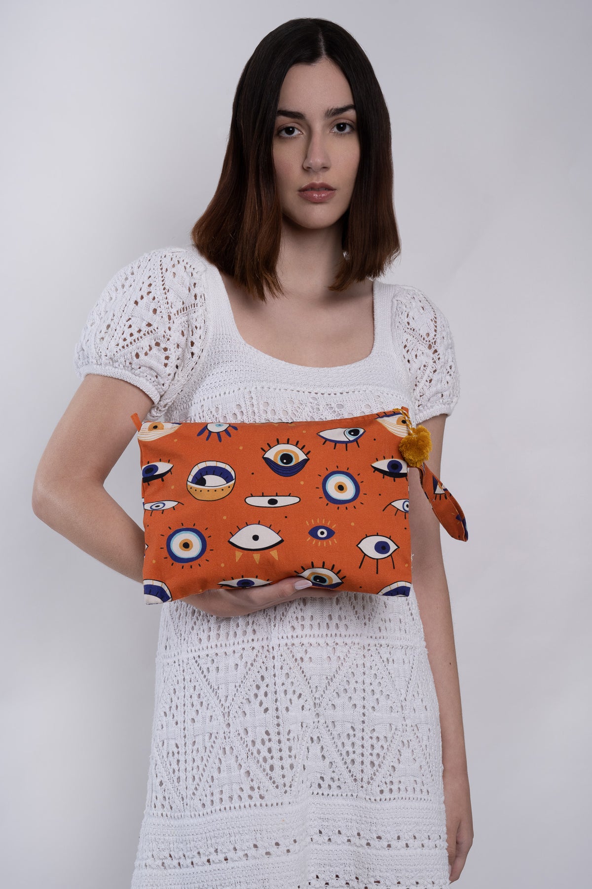 Alça de pulso anexada do mesmo tecido e padrão para fácil transporte.